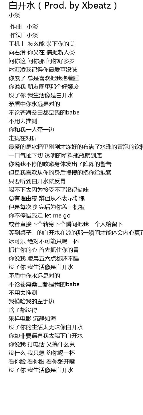| Song | 白开水(Prod. by Xbeatz) |