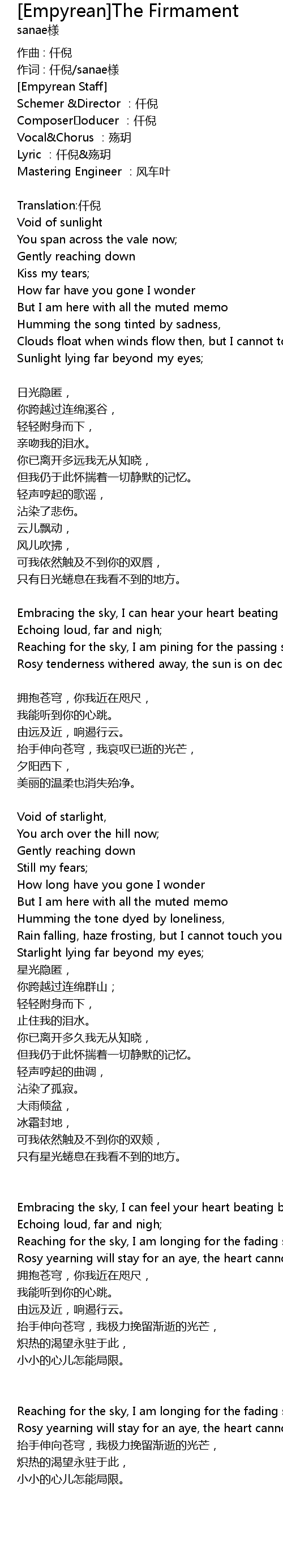 | 抬手伸向苍穹,我哀叹已逝的光芒, | |