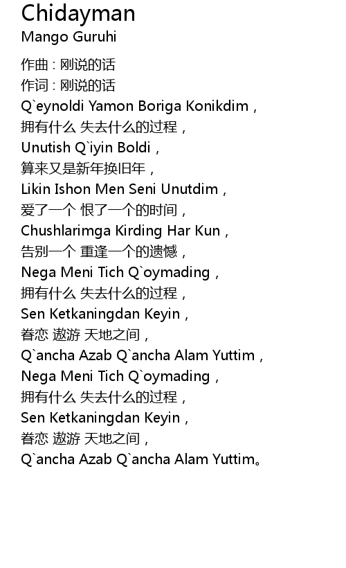 | Q`ancha Azab Q`ancha Alam Yuttim。 |