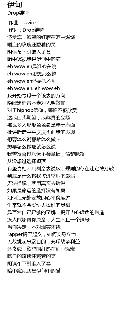 | [00:01.000] | zuò cí : Drop wéi tè |
