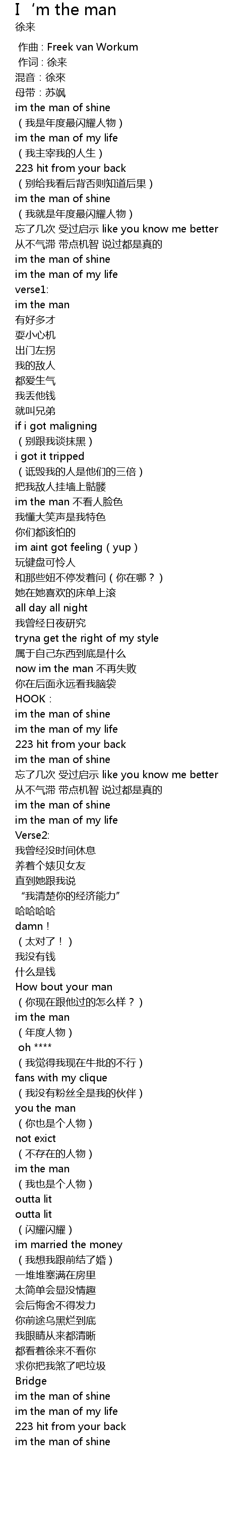 | [00:59.619] | im the man bù kàn rén liǎn sè |