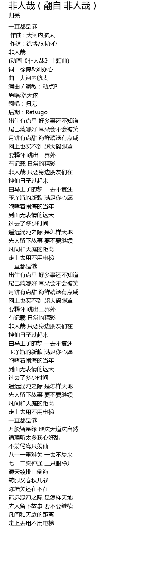 | [00:08.039] | (动画《非人哉》主题曲) |