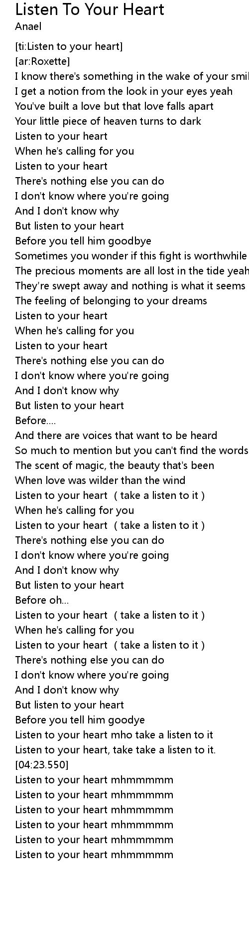| [04:02.290] | Listen to your heart mho take a listen to it |