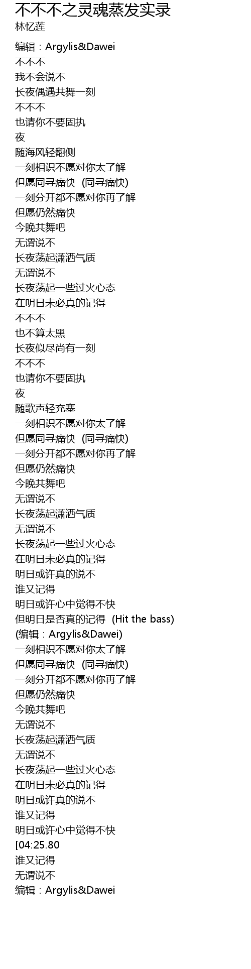 | [04:43.26] | 编辑:Argylis&Dawei |