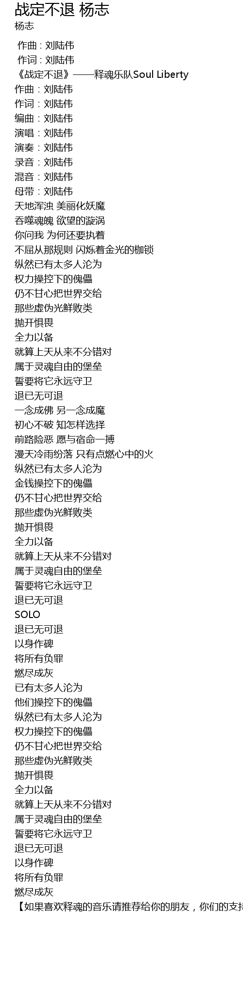 | [00:00.536] | 《战定不退》——释魂乐队Soul Liberty |