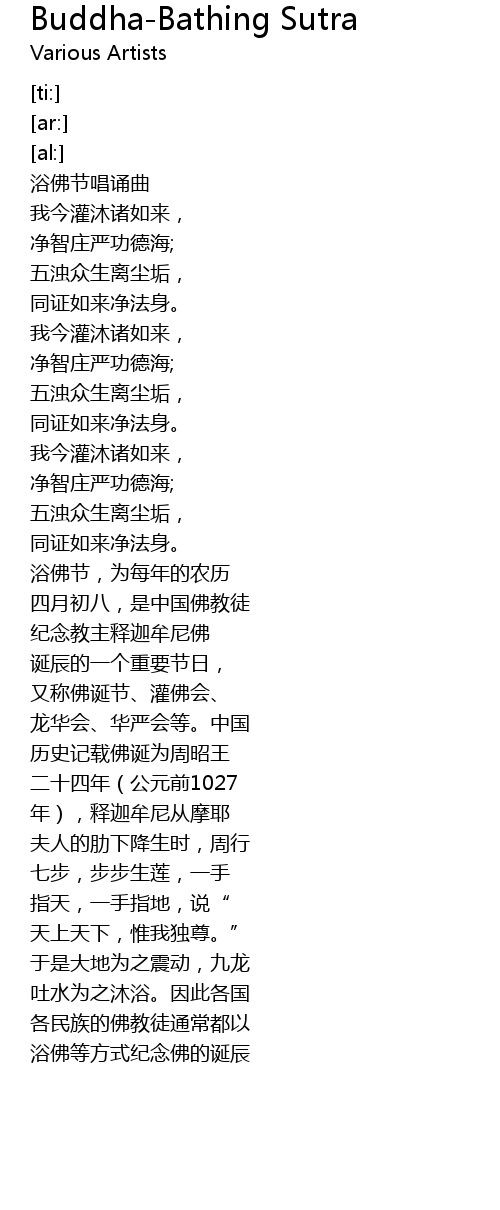 | [05:06.00] | 浴佛等方式纪念佛的诞辰 |