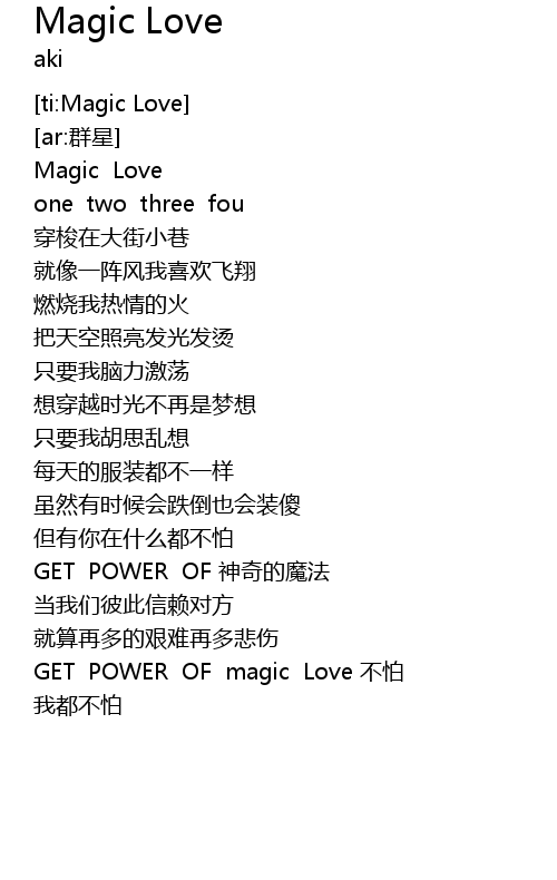 | [01:00.251] | GET POWER OF magic Love 不怕 |