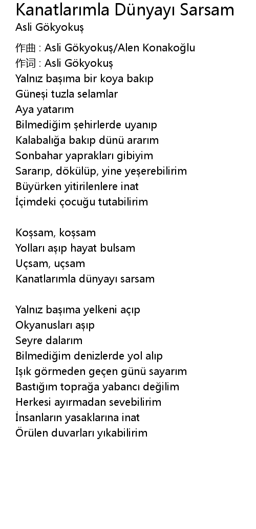 | Song | Kanatlarımla Dünyayı Sarsam |