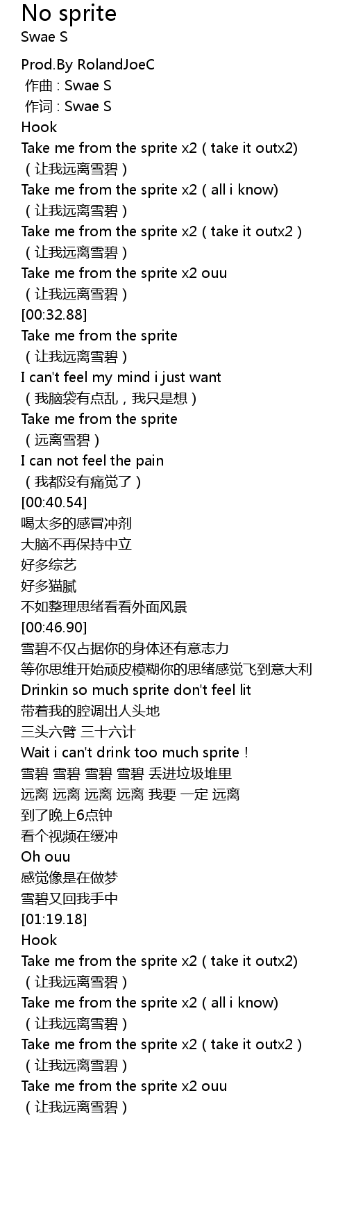 | [01:27.41] | Take me from the sprite x2(take it outx2) |