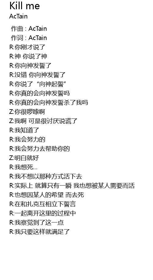 | [00:42.364] | R:你真的会向神发誓杀了我吗 |