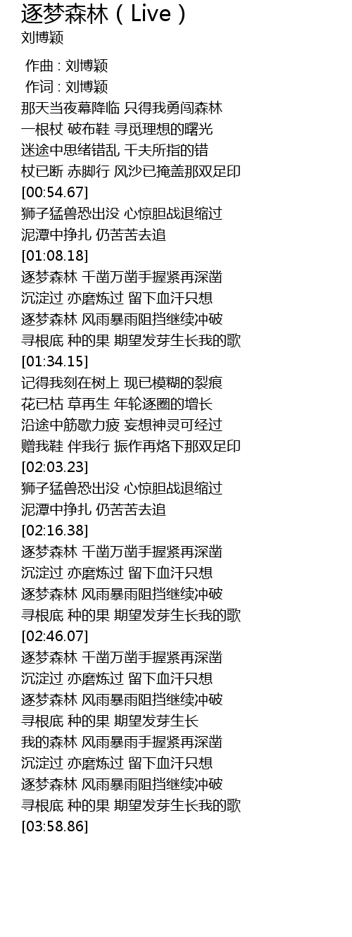 | [03:16.01] | 逐梦森林 风雨暴雨阻挡继续冲破 |