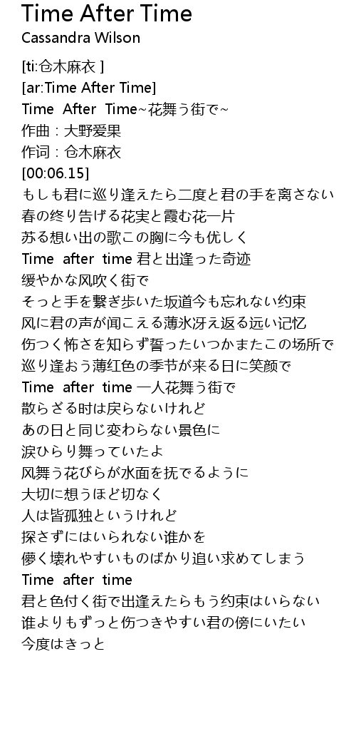 | [00:00.44] | Time After Time~花舞う街で~ |
