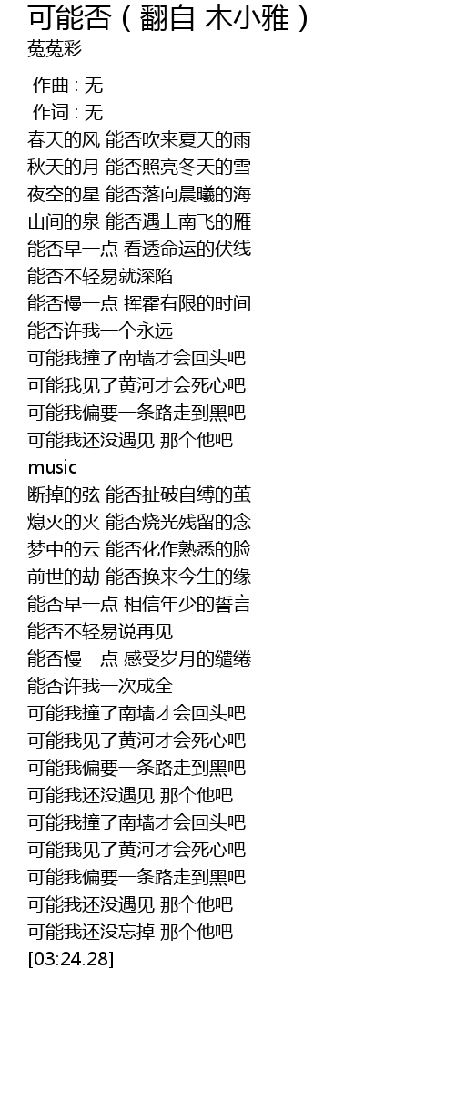 | [03:15.38] | 可能我还没忘掉 那个他吧 |