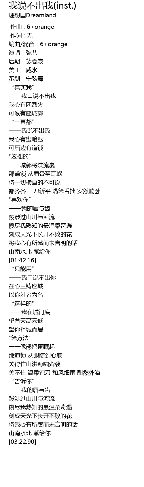 | [01:55.560] | wǒ kǒu shuō bu chū nǐ |