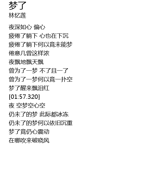 | [00:26.890] | 疲倦了躺下何以竟未能梦 |