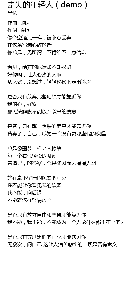 | Song | 走失的年轻人(demo) |