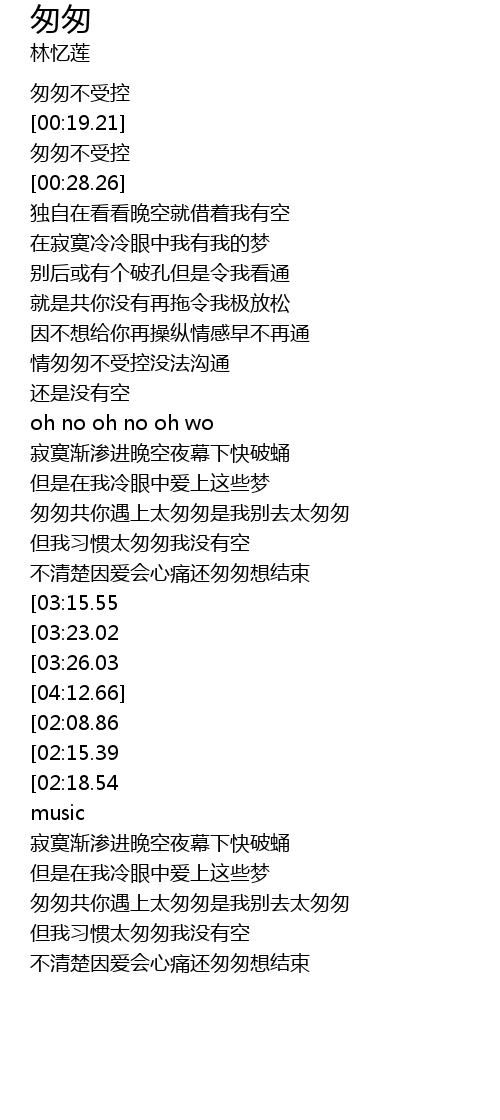 | [00:15.43] | 匆匆不受控 |