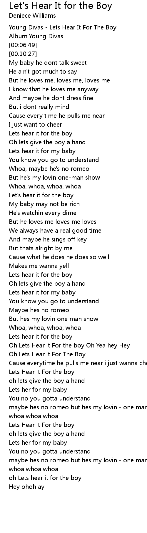 Oh Lets Hear it For the boy Oh Yea hey Hey |