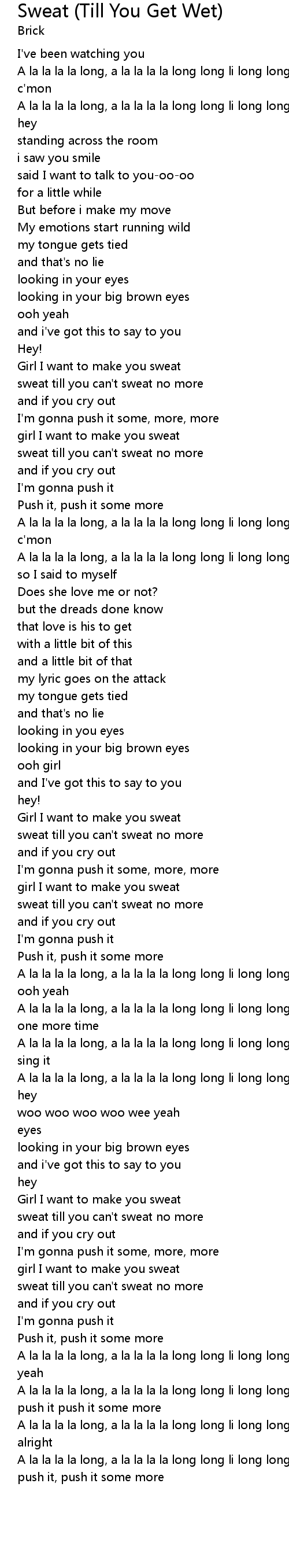 Sweat (Till You Get Wet) Lyrics