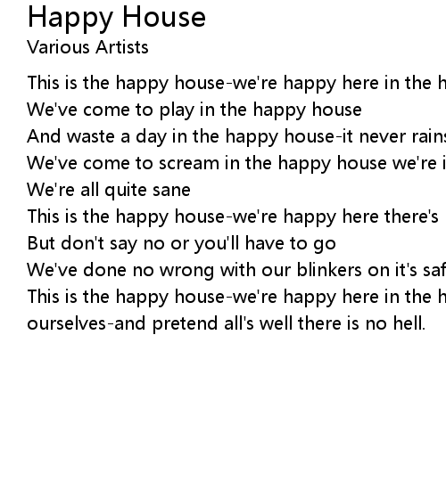 This is the happy house-we're happy here in the happy house. to forget ourselves-and pretend all's well there is no hell. |
