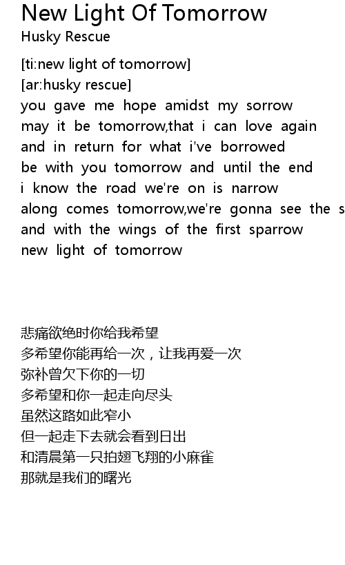 | [03:24.06] | along comes tomorrow,we're gonna see the sun |