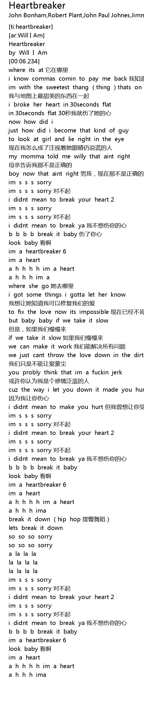 | [03:26.332]im a heartbreaker 6] | 我是一个令人伤心的人 |