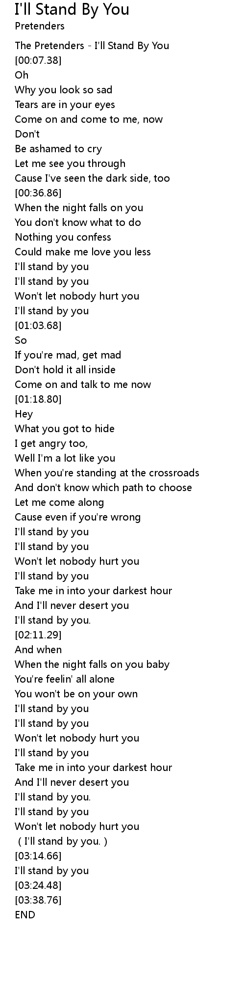 | [00:-0.50] | The Pretenders I' ll Stand By You |