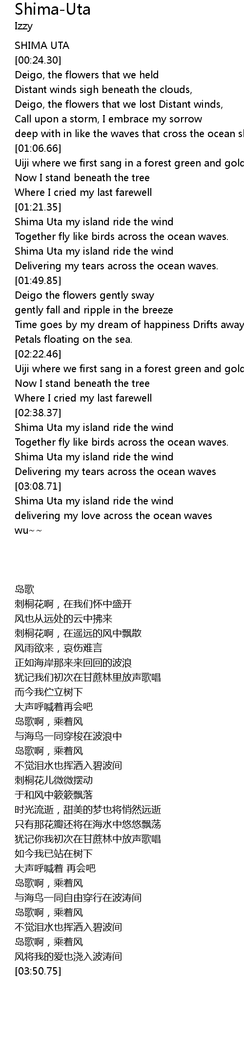 | [03:00.99] | Delivering my tears across the ocean waves |