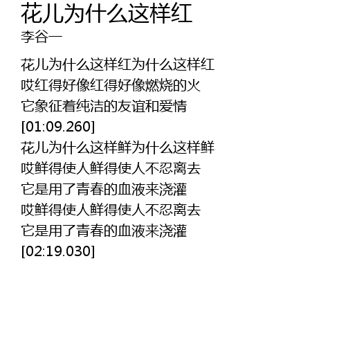 | [01:24.200] | 花儿为什么这样鲜为什么这样鲜 |