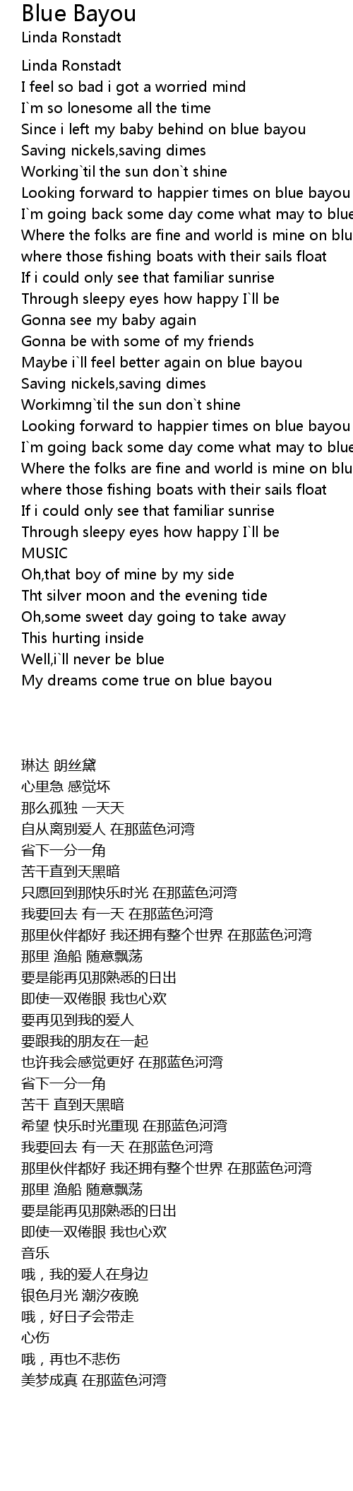 [00:36.40] Looking forward to happier times on blue bayou