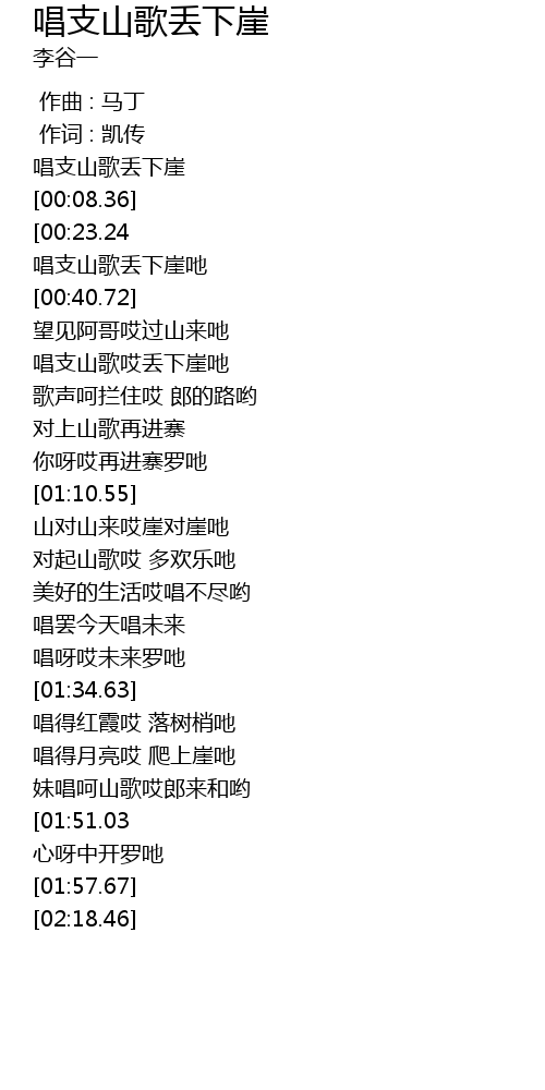 | [00:32.03] | 唱支山歌丢下崖吔 |
