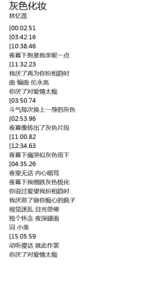 | [15:29.56][15:05.59] | 眼角眼线染泪印 |