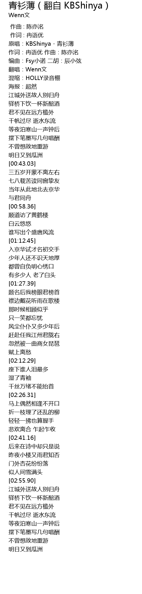 | [00:00.37] | 原唱:KBShinya - 青衫薄 |