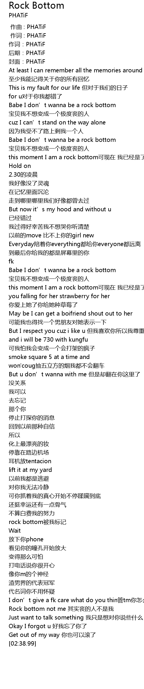 | [02:10.28] | rock bottom被我标记 |