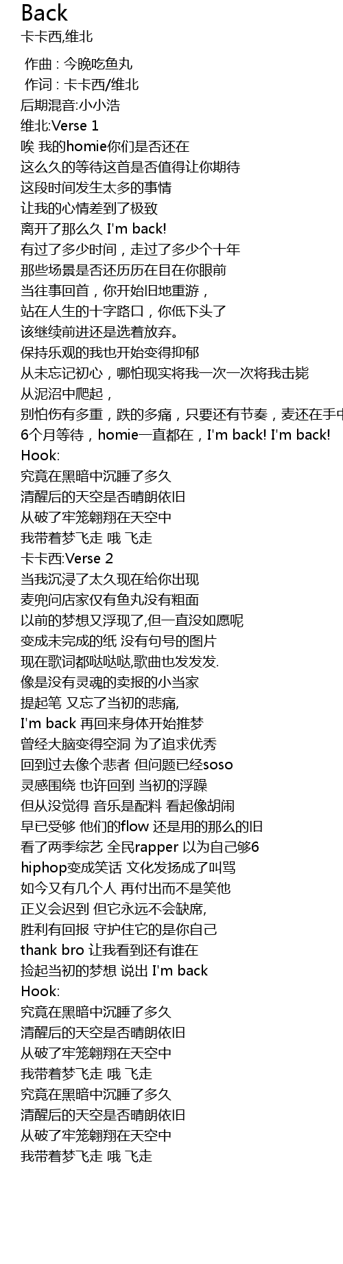 | [00:58.440] | 6 ge yue deng dai, homie yi zhi dou zai, I' m back! I' m back! |