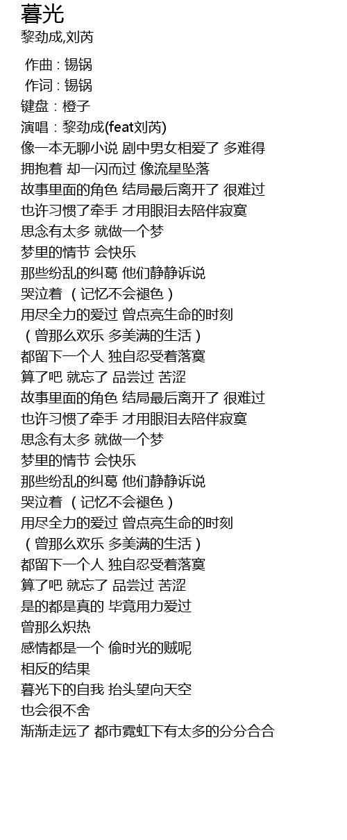 | [00:31.916] | 演唱:黎劲成(feat刘芮) |