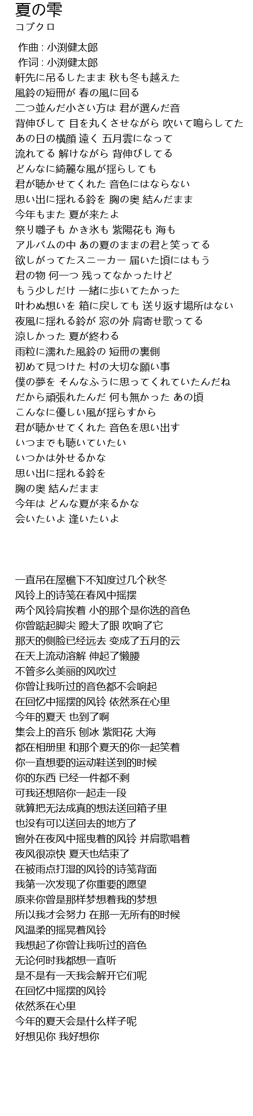 | [02:36.54] | 祭り囃子も かき氷も 紫陽花も 海も |