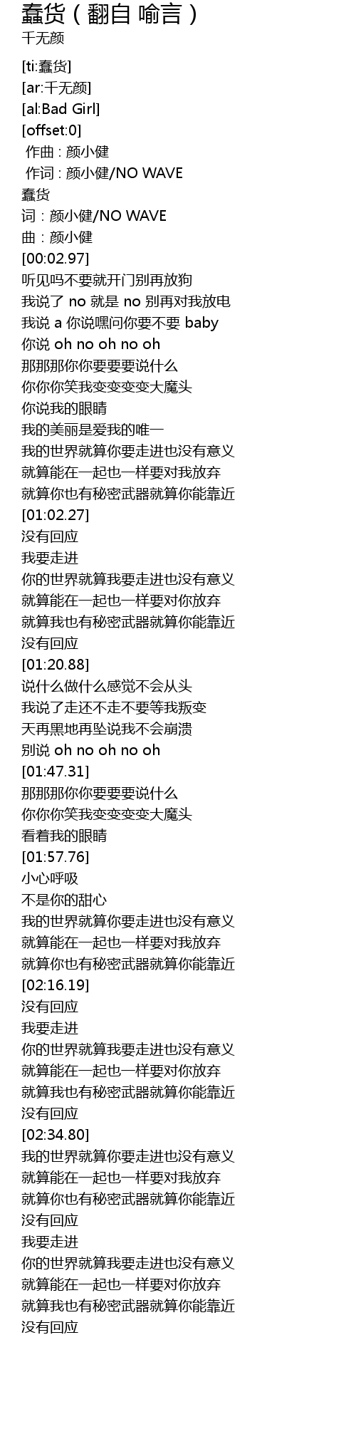 | [00:00.060] | 作词 : 颜小健/NO WAVE |