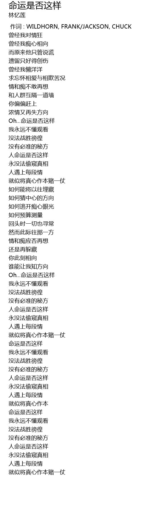 | [00:00.00] | 作词 : WILDHORN, FRANK/JACKSON, CHUCK |