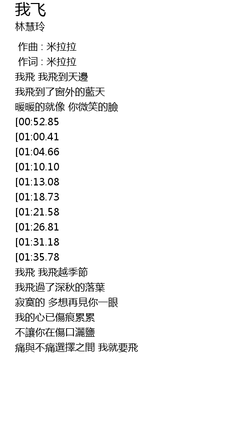 | [03:15.36] | 痛與不痛選擇之間 我就要飛 |