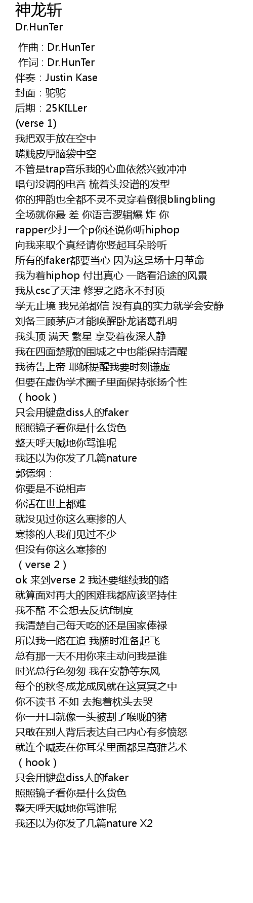 | [00:01.000] | 作词 : Dr.HunTer |