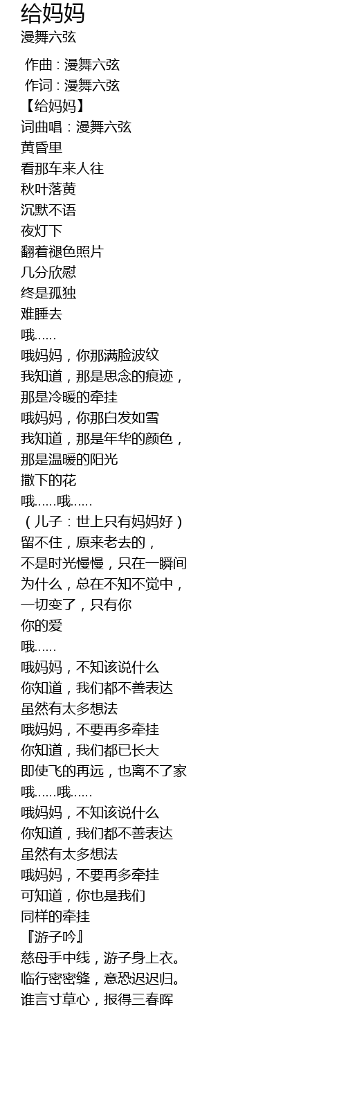 | [00:06.677] | 【给妈妈】 |