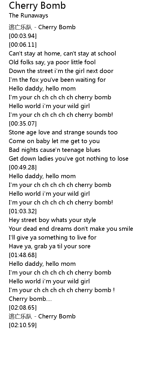 | [00:59.68] | I'm your ch ch ch ch ch cherry bomb! |