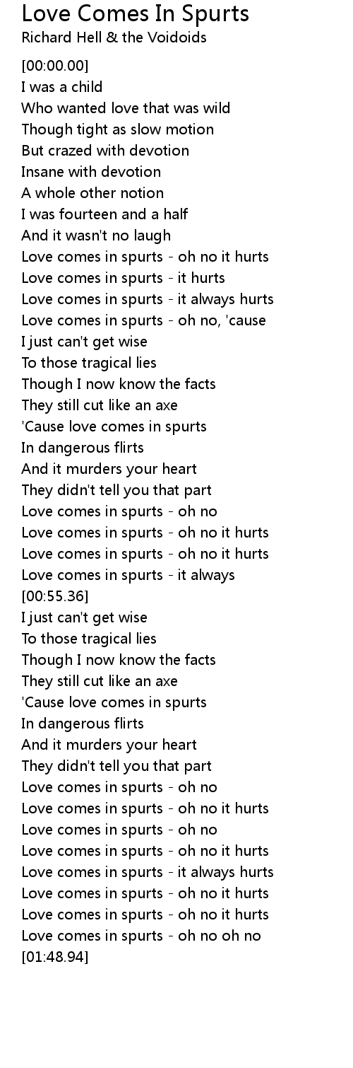[00:26.92] Love comes in spurts - oh no, 'cause