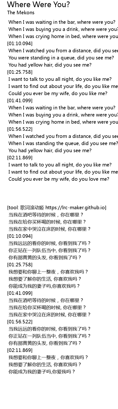 When I was crying home in bed, where were you? |