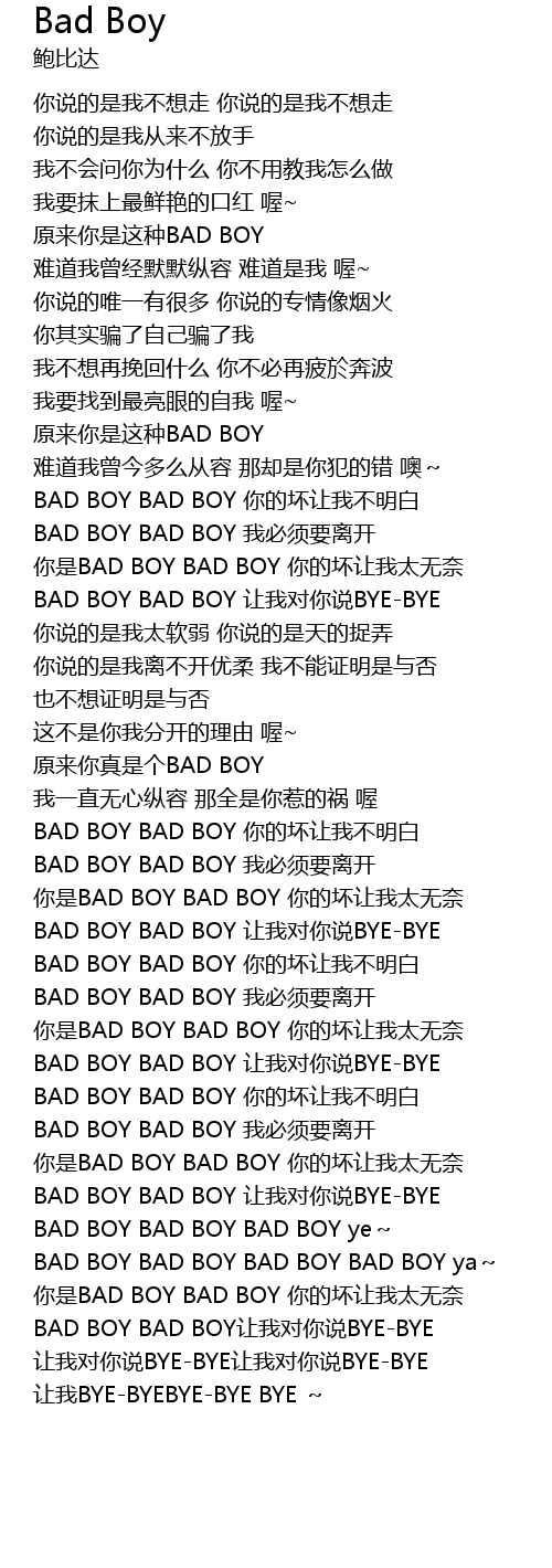 | [03:40.42] | BAD BOY BAD BOY rang wo dui ni shuo BYEBYE |