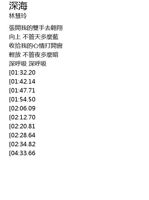 | [04:51.01][04:33.66][02:40.91] | 深呼吸 深呼吸 呼吸 |