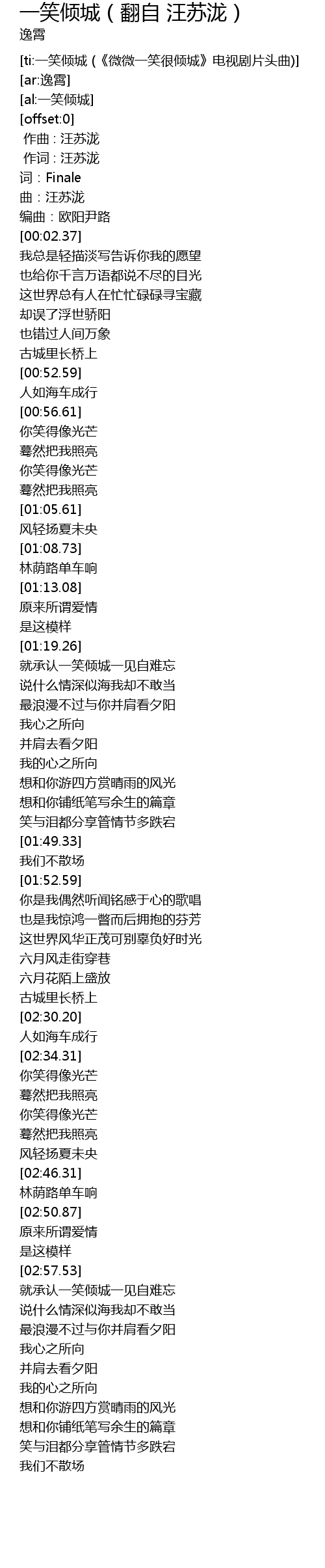 | [ti:一笑倾城 (《微微一笑很倾城》电视剧片头曲)] | |