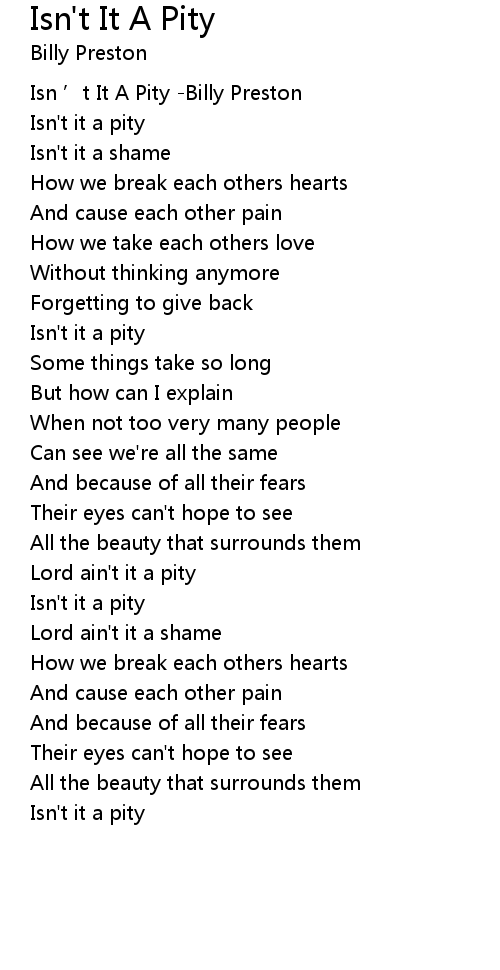 | [00:00.721] | Isn ' t It A Pity Billy Preston |