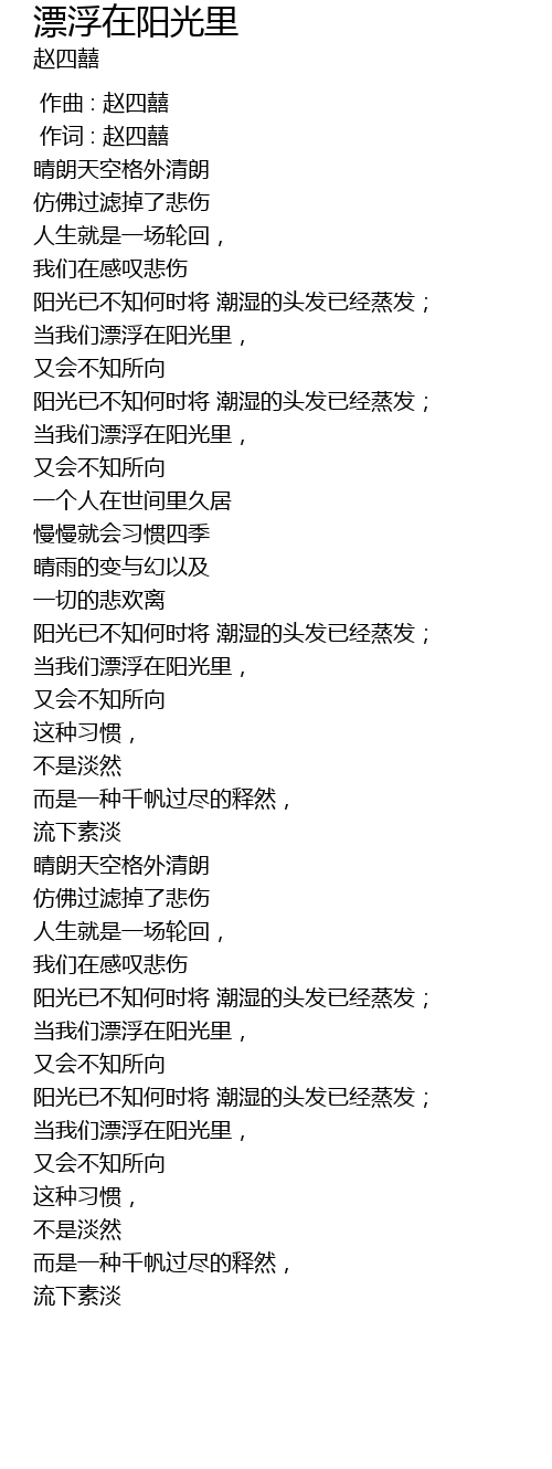 | [00:41.18] | 当我们漂浮在阳光里, |